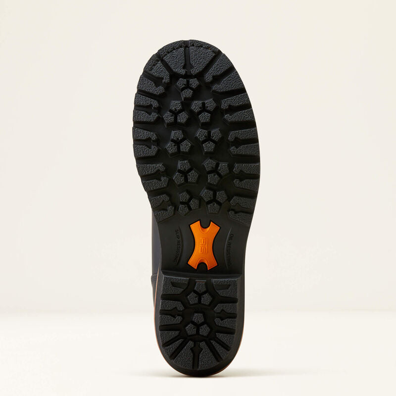 Rugged logger style meets ARIAT innovation. The Logger Shock Shield absorbs impact to your feet, helping you stay comfortable, longer. Extremely durable, cushioned, and with heavy-duty traction, it's ideal for harsh outdoor jobs, high-heat environments, and intense construction work.