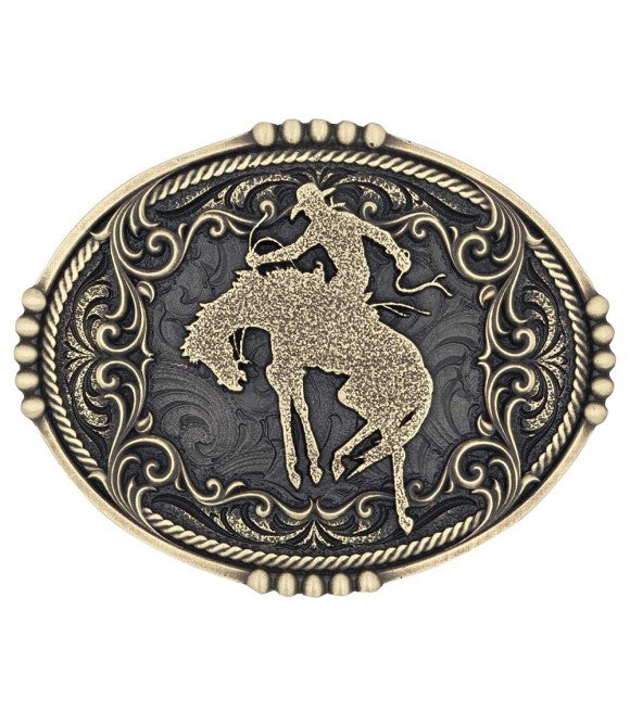 - Features classic silhouette if a cowboy atop a bucking bronco