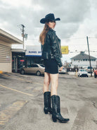 Chic, beautiful, and glamorous. The black-on-black studded detail will be a staple design for your wardrobe.