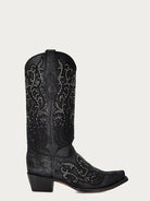 The 13-inch tall top shaft is covered by an intricate embroidery design and carefully placed studs that highlight its beauty.