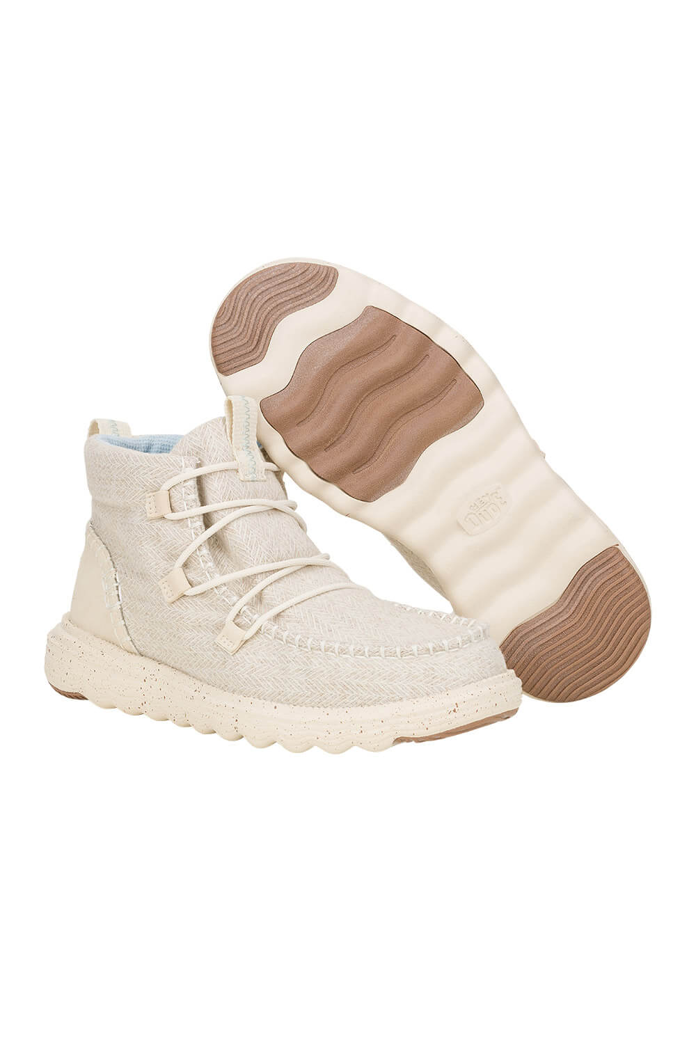 HEYDUDE Women’s Reyes Heathered Lace Up Booties in Ivory By Hey Dude Shoes