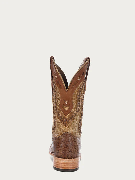 A4008 - MEN'S BROWN EMBROIDERY WITH WOVEN DETAIL AND OVERLAY FULL QUILL OSTRICH SQUARE TOE COWBOY BOOT