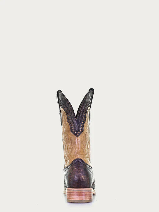 A4117 - MEN'S EMBROIDERY BROWN WOVEN WIDE SQUARE TOE HONEY COWBOY BOOT