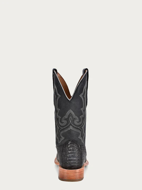A4291 - MEN'S EMBROIDERY OSTRICH LEG VAMP AND COUNTER BLACK WIDE SQUARE TOE COWBOY BOOT
