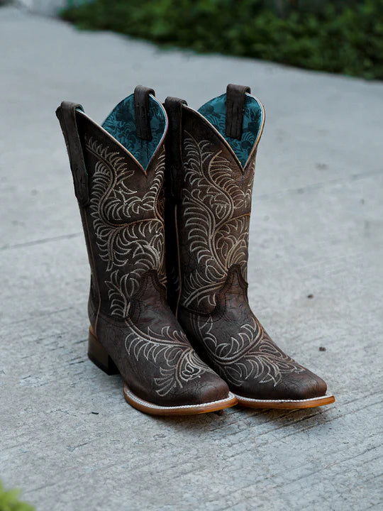 A4452 - MEN'S EMBROIDERY LAMB SHAFT GENUINE BROWN PYTHON VAMP SNIP TOE COWBOY BOOT