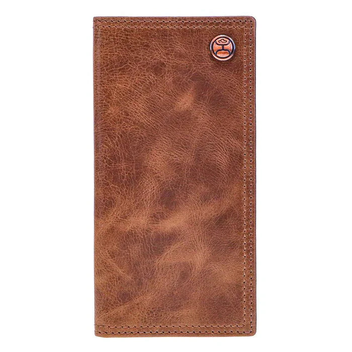 This Hooey rodeo wallet features a smooth brown exterior and interior with a brown double-stitched accent edge and includes our custom hooey brand woven logo liner.