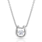 Our dancing birthstone horseshoe necklace is perfect for any cowgirl or those looking for a bit of luck, who has a birthday coming up. Set on a silver-toned chain, the bright silver-toned horseshoe highlights the beautiful colored birthstone in the color of your choice dancing in the center. It's perfect for everyday wear. Horseshoe pendant has a sliding bridge bail on a princess length, 19 inch chain.