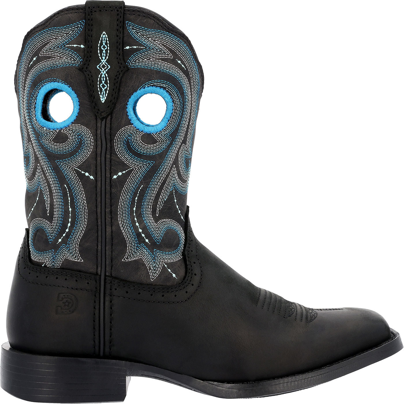 This is the womenâs 10â Western Midnight Sky Durango® Westward⢠style. This style has a full-grain leather foot and pull straps with a faux shaft. Inside the boot is a soft mesh lining, Durango® X-Pand System⢠for easy on/off and the Durango® Advanced Comfort System Footbedâ¢. The fiberglass shank and little way stitch in the forepart and shank area provides ultimate durability. This style also features a rolled shank area, slip-resistant rubber outsole, double row sole stitch, 1 ½â stockman heel and square toe. Depend on lightweight comfort and all-day durability in the womenâs 10â Western Midnight Sky Durango® Westward⢠style. Get a pair today!