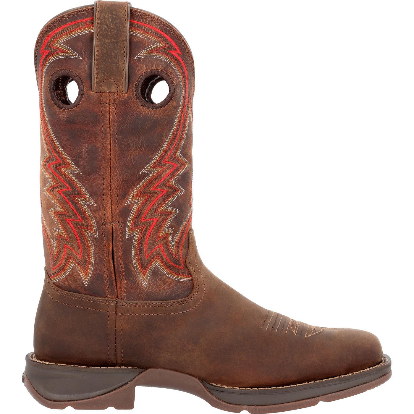 This is the men's 12" Western Dark Chestnut Durango® Rebelâ¢. This style is full-grain leather, has a soft mesh lining, the Durango® X-Pand System⢠which is a hidden gore expansion for universal fit and easy on/off, the Durango® X-Treme Comfort footbed⢠with Memory Foam and a cushion flex insole for all day comfort. This style also features a fiberglass shank which provides lightweight stability and a rolled shank area. The molded EVA midsole is lightweight and flexible, and the outsole is slip and oil-resistant, dual-density and abrasion resistant rubber. This style also features a double row sole stitch, 1 ½" rocker heel and square toe. Stay comfortable in this men's 12" Western Dark Chestnut Durango® Rebelâ¢. Get a pair today!