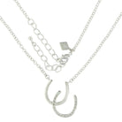 In the River Lights Collection, these pieces echo the dazzling light reflected in the wild rivers and shining in the clear night sky using colored stones set in silver finishes. The classic shape of a horseshoe is kicked up a notch in this double horseshoe pendant necklace with the bold greens and blues of the inlaid opal stone set against the smooth silver toned edging, with the lower horseshoe laid over the top set with brilliant clear stones. Pendant attaches on either side of the top horseshoe on a princess length 19 inch chain.