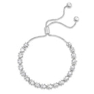 Accessorize with sparkle using the Between Crystals Bolo Bracelet. This stunning bracelet features clear cubic zirconia crystals that will glimmer with every movement. Separating each glistening crystal is an open silver tone link creating a unique look. Perfect to layer with other pieces or wear on its own for a minimal look, this bracelet will soon be a staple in your collection.