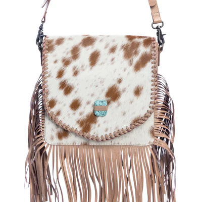 The Myra Corona Mia Leather & Hairon Bag is a perfect mix of rustic charm and modern elegance. Featuring genuine hair-on-hide and rich leather, these western cowhide purses showcase intricate hand-tooled detailing for a bold Western touch. Flowing fringe on the sides adds movement, while a secure zipper closure, inside pocket, and phone compartment keep essentials organized. With a detachable, adjustable strap, this hairon handbag is a standout piece for any adventure.