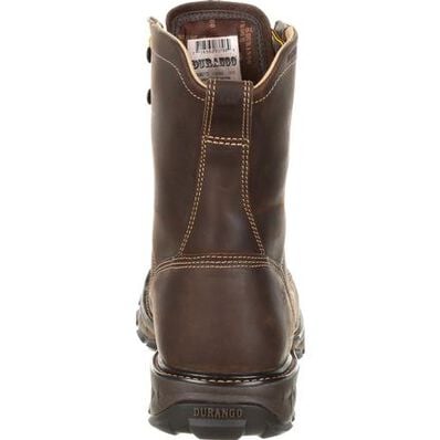 This is the men's 8" Durango® Maverick XP⢠Steel Toe Waterproof Lacer. This style is full-grain leather with a soft mesh lining and Durango® Waterproof membrane bootie to keep your feet dry all day long. It has a removable brush guard kiltie, the Durango X-Treme Comfort footed with Memory Foam for all day comfort and support. Inside it has a fiberglass shank for lightweight stability, dual-density midsole with firmer shock absorbing heel for added stability and a soft shock absorbing forepart for ultimate flexibility and comfort. The rolled shank area and anti-torsion ridged external shank provides added lateral stability and the outsole is a multi-durometer rubber with high abrasion outer lugs for high impact durability and softer durometer mid lugs for added flexibility and increased slip and oil resistance. It has a single row sole stich around the round toe for added durability and a 1 ½" rocker heel. Break Ground in the Durango® Maverick XP⢠8" Waterproof Steel Toe Lacer. Get a pair today!