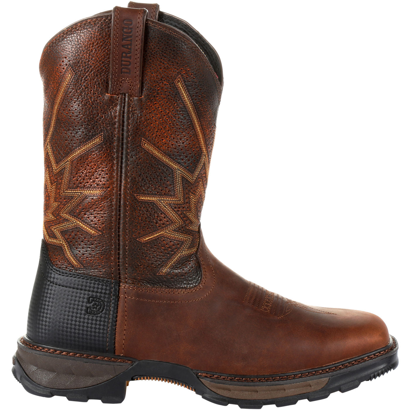 This is the men's 11" Ventilated Western Steel Toe Durango® Maverick XPâ¢. This style is full-grain leather with a ventilated shaft and air mesh lining to promote maximum air flow. It has the Durango® X-Pand System⢠which is a hidden gore expansion on the inside medial seam for a universal fit and easy on/off and the Durango X-Treme Comfort footed with Memory Foam for all day comfort and support. It also has a high abrasion heel counter, fiberglass shank for lightweight stability and a dual-density midsole with firmer shock absorbing heel for added stability and a soft shock absorbing forepart for ultimate flexibility and comfort. The rolled shank area and anti-torsion ridged external shank provides added lateral stability and the outsole is a multi-durometer rubber with high abrasion outer lugs for high impact durability and softer durometer mid lugs for added flexibility and increased slip and oil resistance. It has a double row sole stich around the square toe for added durability and a 1 ½" rocker heel. Break Ground in the 11" Ventilated Western Steel Toe Durango® Maverick XPâ¢. Get a pair today!