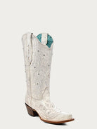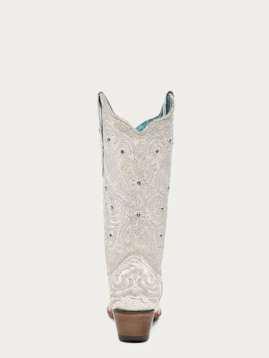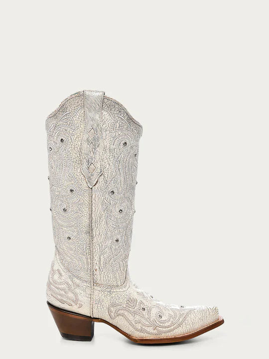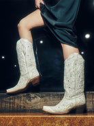 Fashionable, stunning, and glamorous. These bone colored crystal-detailed boots are a must-have.