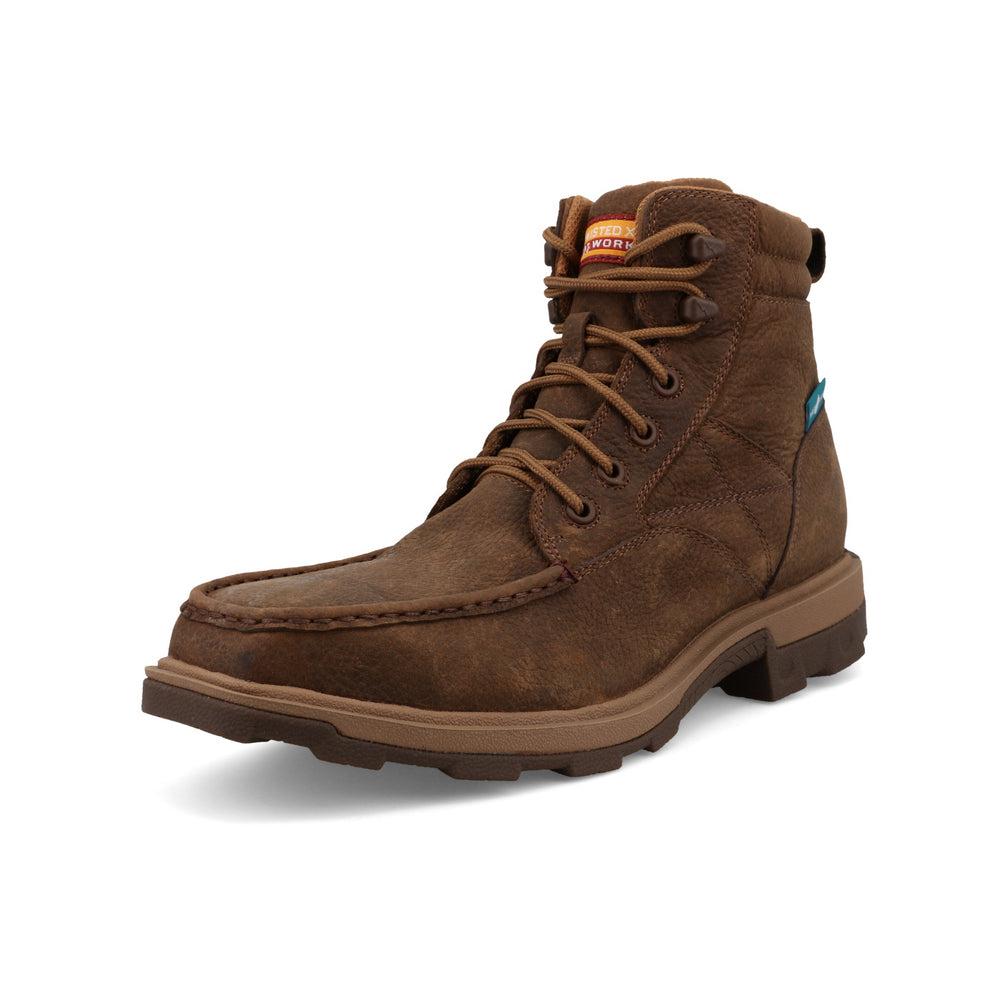 This 6" UltraLite X™ Work boot with Pull-onno Toe keeps you light and safe on your feet. Its unique EVA compound reduces weight by an average of 20%, plus added protection from EH-rated oil/slip-resistant rubber outsole and 1.5" tall block heel. Plus, a waterproof lining, leather heel loop and special Blend85™ footbeds, keep you comfortable all day. Storm welt and composite shank provide further support, while a compression-molded EVA midsole ensures total safety.