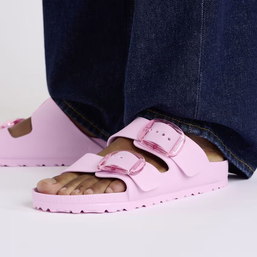 The BIRKENSTOCK Arizona is a genuine classic. Modeled on the cork sandal, this version is made from EVA. The high-quality, odor-neutral EVA has been tested for harmful substances and combines numerous positive attributes: it is very light, highly elastic, water-resistant, and skin-friendly and offers the comfort you have come to expect from BIRKENSTOCK. This version features our popular Big Buckle made from a stainless synthetic material and makes an impression with its durability and minimalist design.