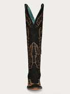 Chic, stuning and gorgeous. Turn heads when you slip into these tall black and gold embroidery boots.