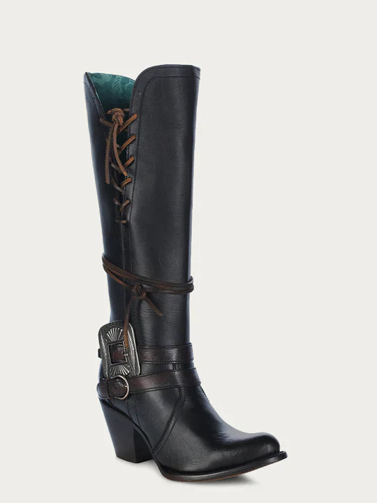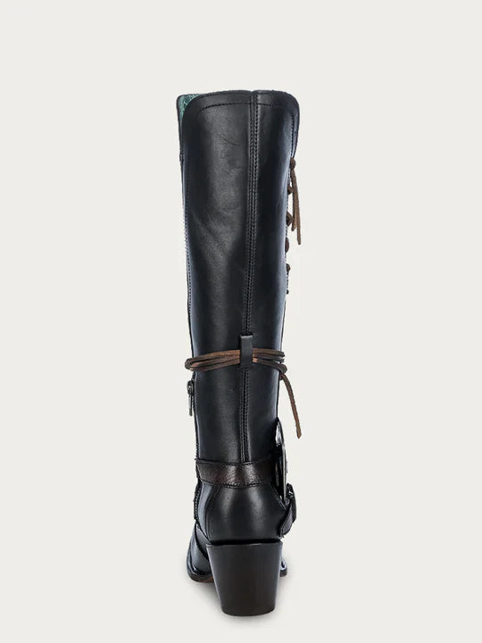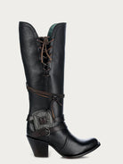 The 15-inch shaft sleek silhouette is featuring a simple harness and lace that add to it beauty.