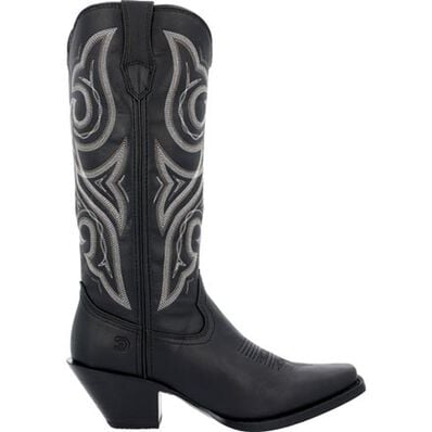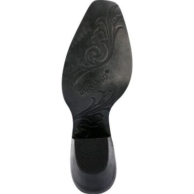 This is the womenâs 13â Western Black Beauty Crush⢠by Durango®. This style is faux leather, has a soft mesh lining, cushion flex insole and nylon shank. This style has a single row sole stitch around the snip toe, rubber outsole with a vintage finish and 2 ¾â fashion heel. Step into style and comfort in this 13â Western Black Beauty Crush⢠by Durango®. Get a pair today!