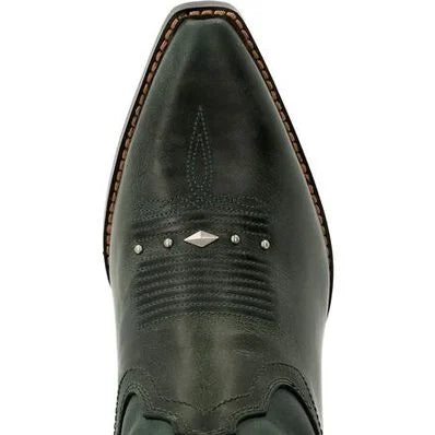 This is the women's 8" Western Vintage Teal Bootie Crush⢠by Durango®. This style is full-grain leather with a faux shaft and beautiful fringe details. It has a soft mesh lining, antiqued silver studs and includes a medial side zipper for easy on/off and the Durango® Sole Comfort Footbedâ¢. It features a nylon shank, single row sole stitch around the snip toe, rubber outsole with a vintage finish and 2 ½" fashion heel. Step into comfort and style in this 8" Western Vintage Teal Bootie Crush⢠by Durango®. Get a pair today!