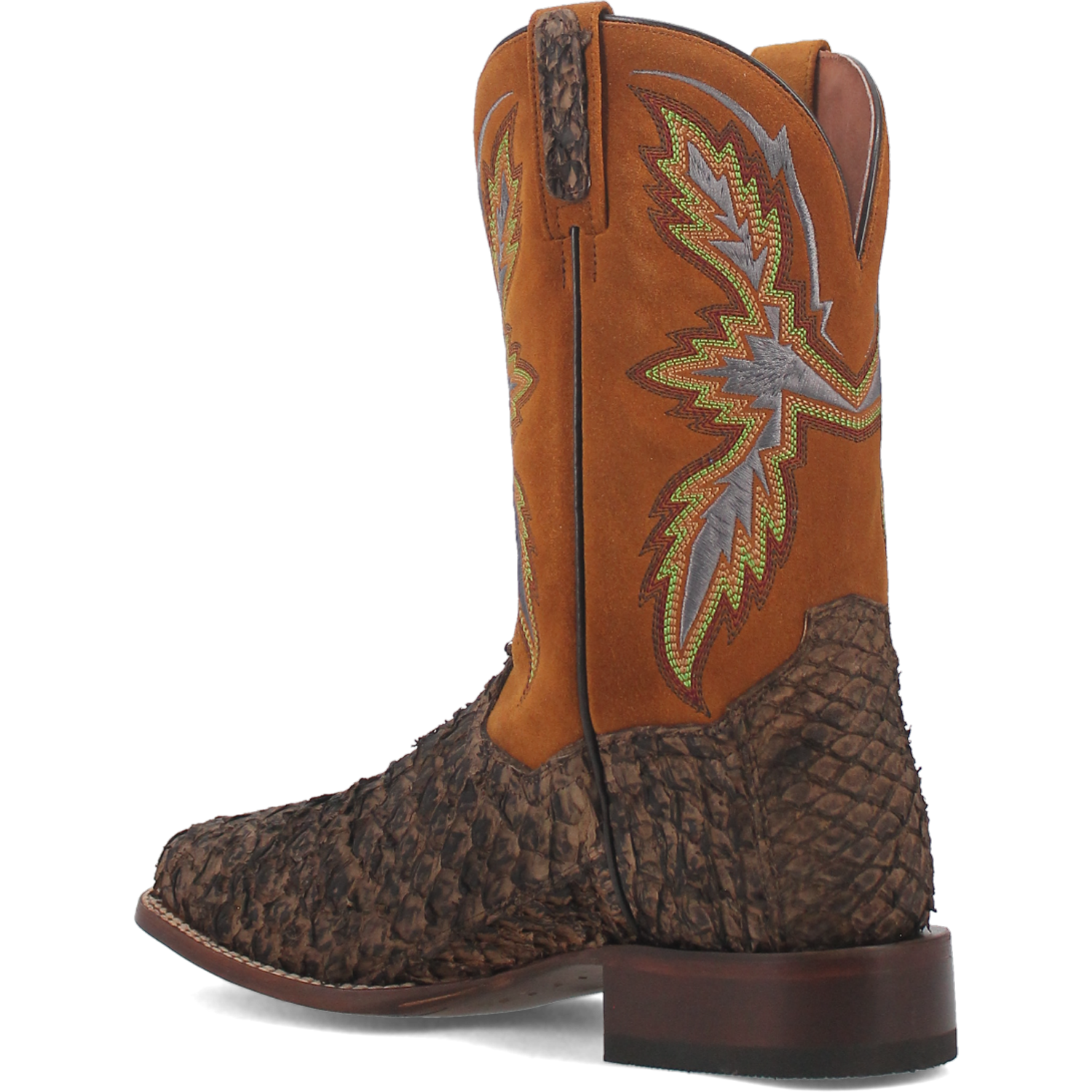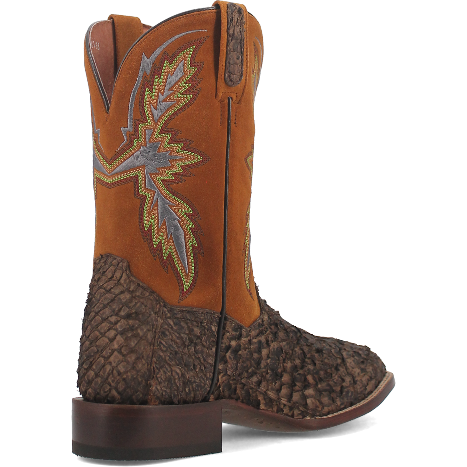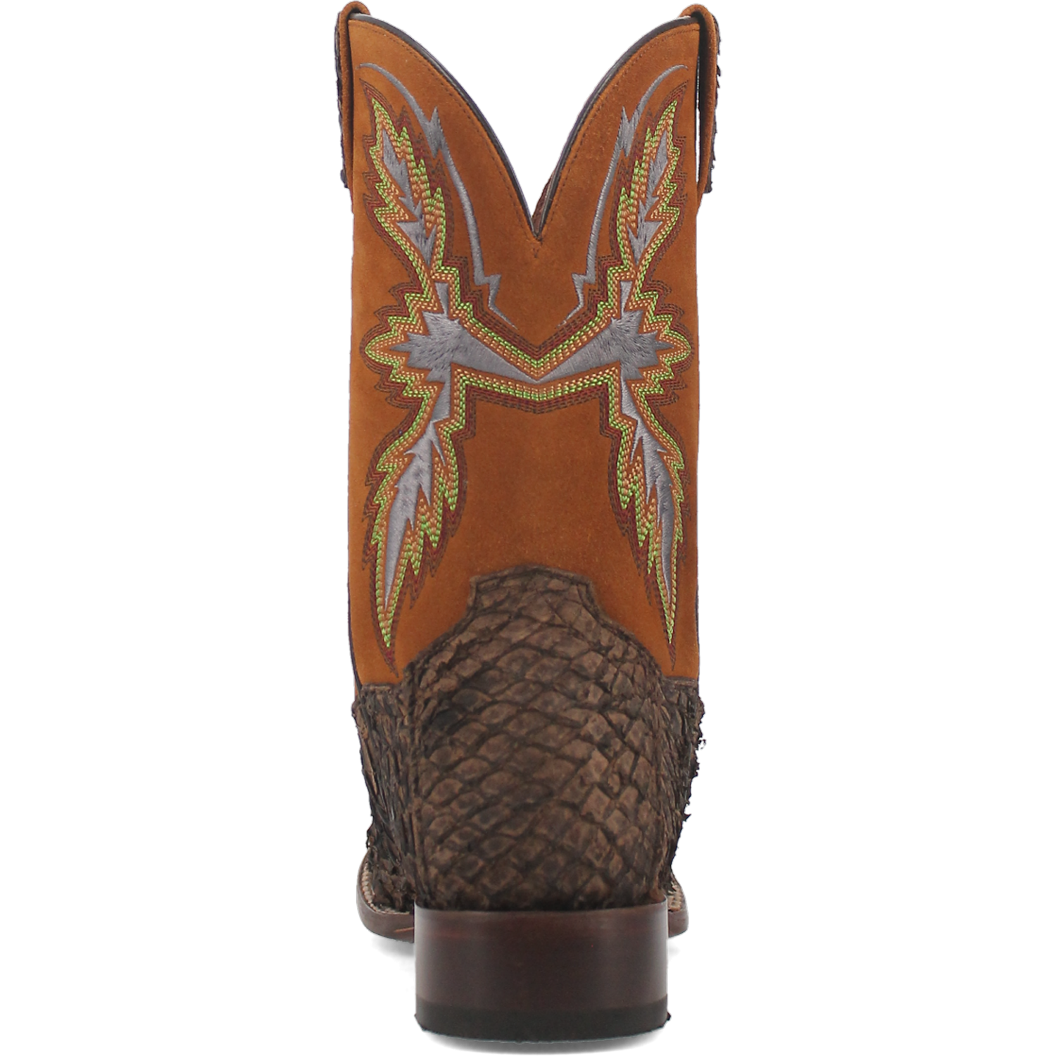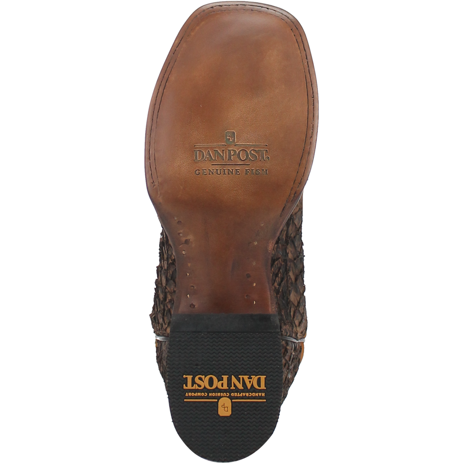 What a boot! The DAN POST COMPANY Dorsal is handcrafted of genuine Sea Bass which has a velvety textured finish. The rich leather upper is highlighted by contrasting multi-row fancy stitch and embroidery. Features broad square toe, stockman heel, Soft Strike Orthotic and leather outsole. Make a statement.