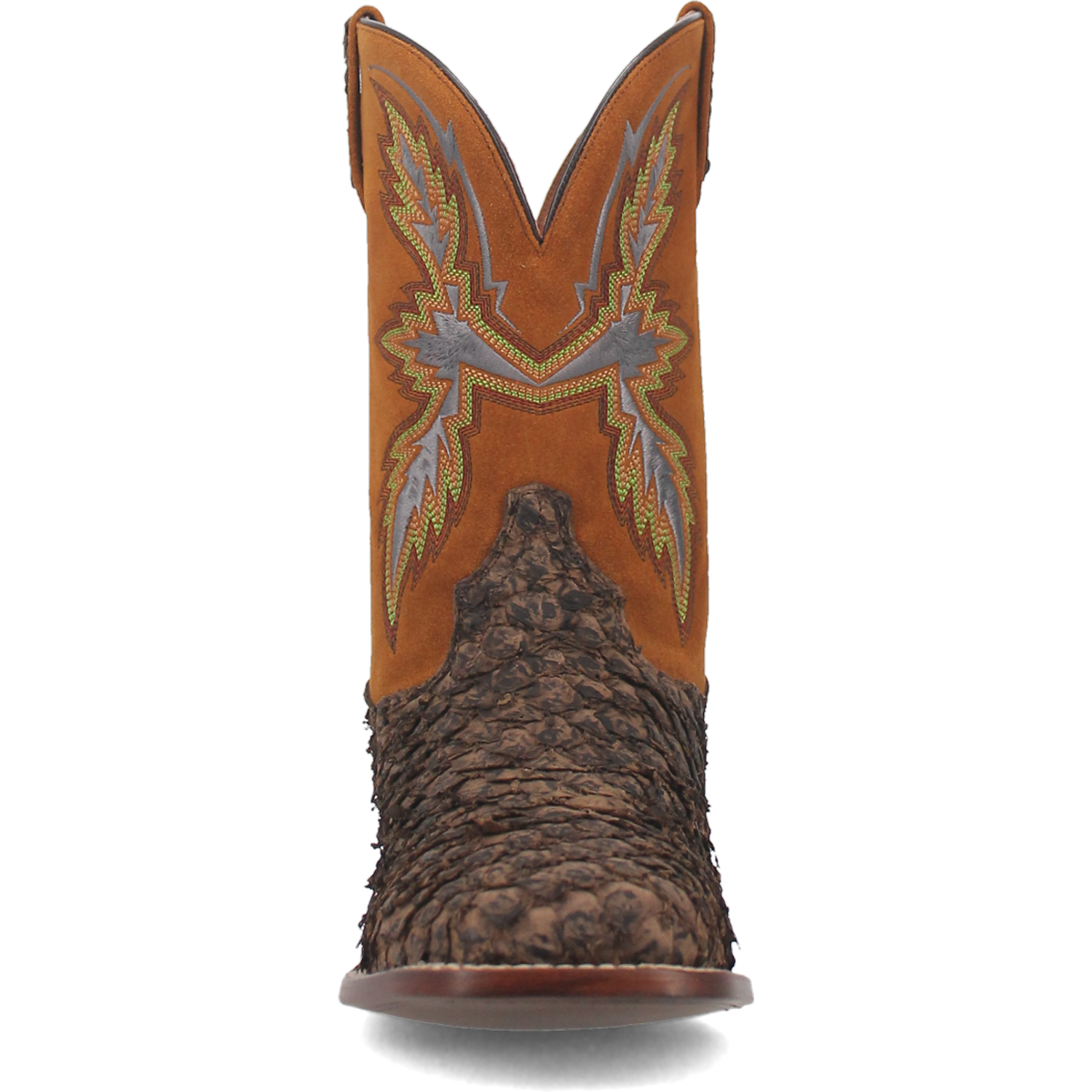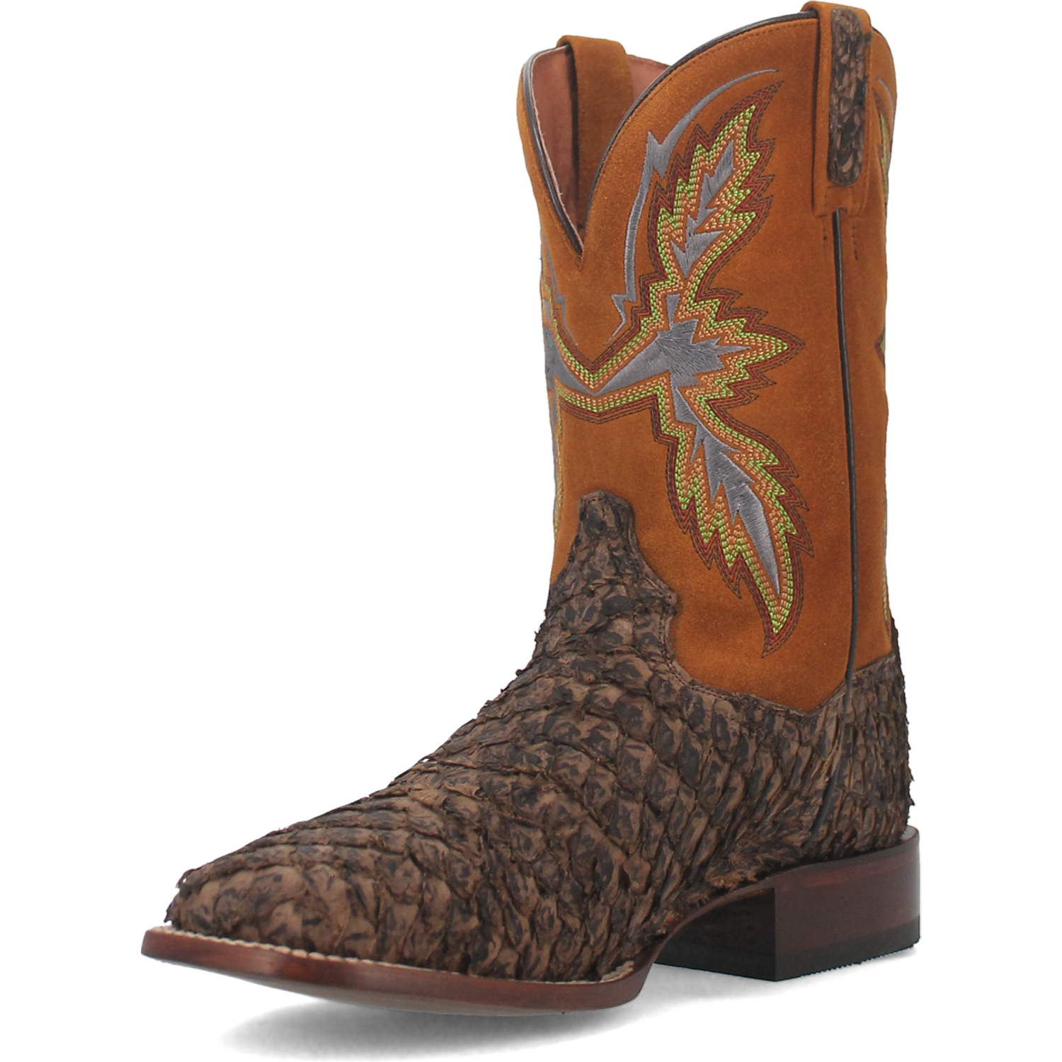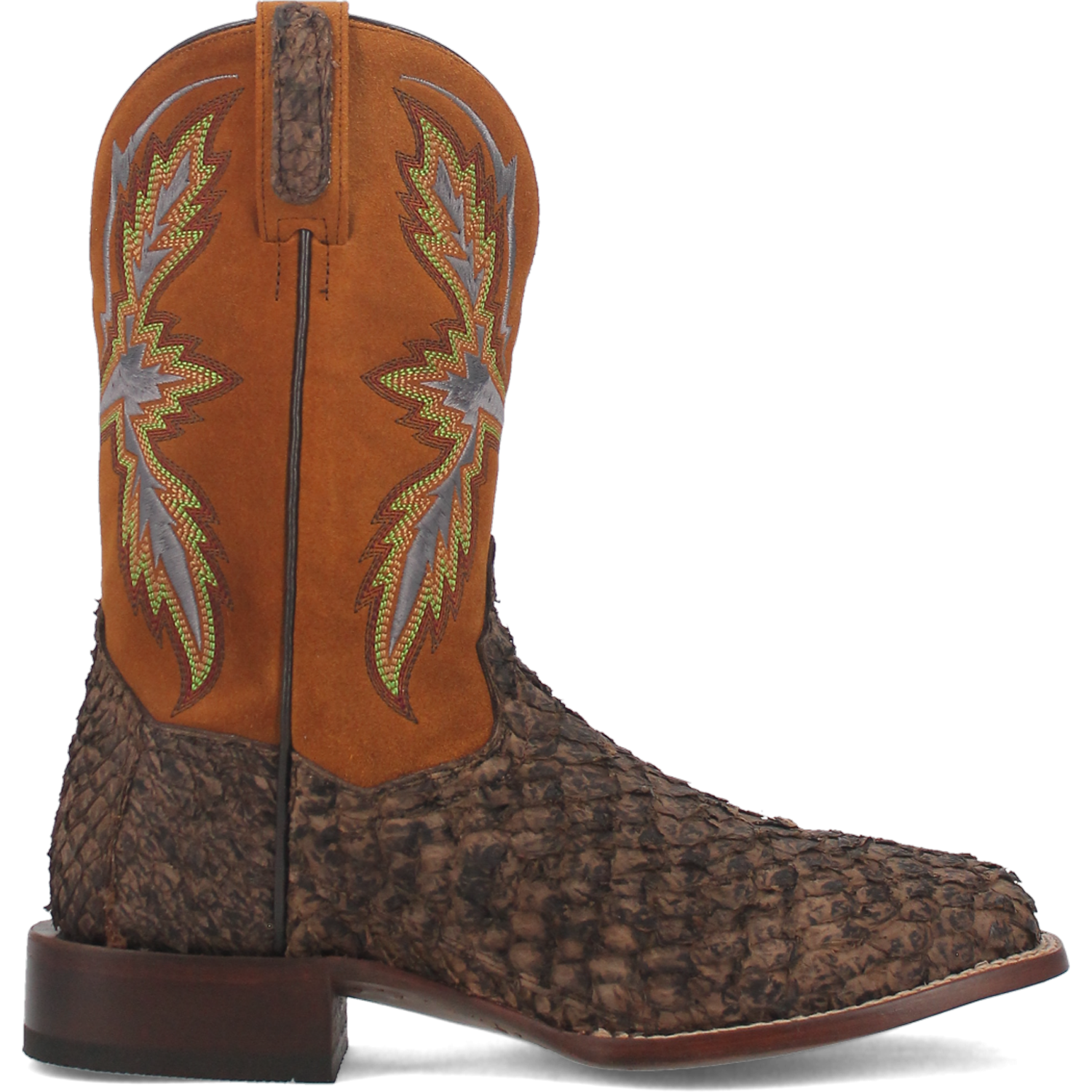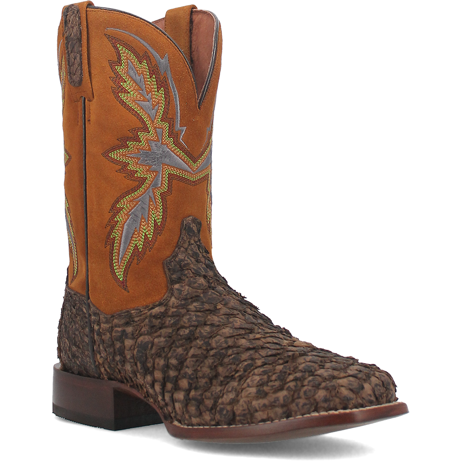 What a boot! The DAN POST COMPANY Dorsal is handcrafted of genuine Sea Bass which has a velvety textured finish. The rich leather upper is highlighted by contrasting multi-row fancy stitch and embroidery. Features broad square toe, stockman heel, Soft Strike Orthotic and leather outsole. Make a statement.