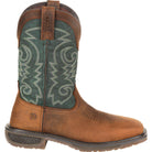 This is the men's 11 inch Western Brown/Forest Green Steel Toe Durango® WorkHorse™. This style has a full-grain leather foot, collar and pull straps with a faux shaft, soft mesh lining and a breathable dual-density contoured cushioned footbed for all-day comfort. This style also features the Durango® X-Pand System™ which is a hidden gore expansion on the inside medial seam for a universal fit and easy on/off. This style has a steel shank for stability and the outsole is slip, oil and abrasion resistant rubber with a dual-density EVA heel for added shock absorption and a dual-density forepart for added flexibility. This boot also includes an all-around buffed sidewall with a storm welt sole for durability, single row stitch and a 1 ½-inch rocker heel. Robust durability meets lightweight comfort in Durango® WorkHorse™. Outperform the toughest jobs in this dependable and powerful collection. Built for the WorkHorse in you. Get a pair today!