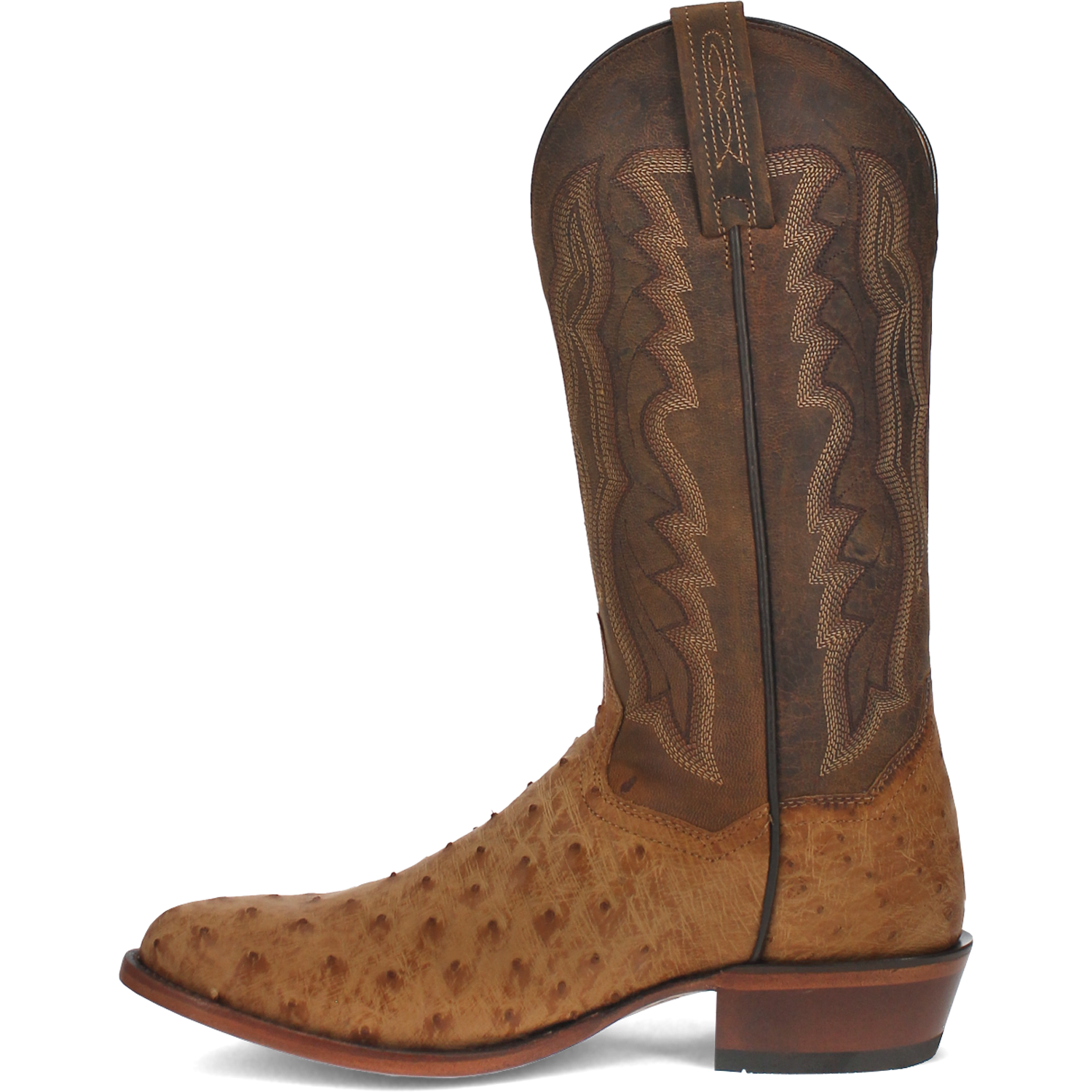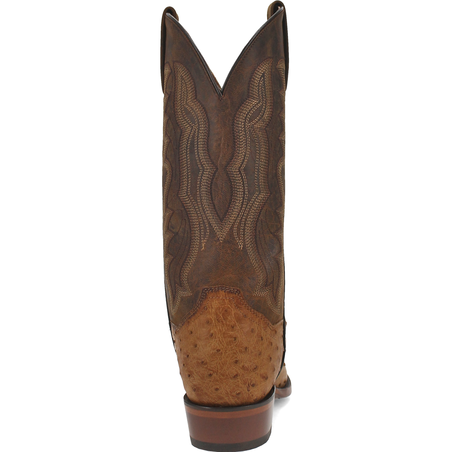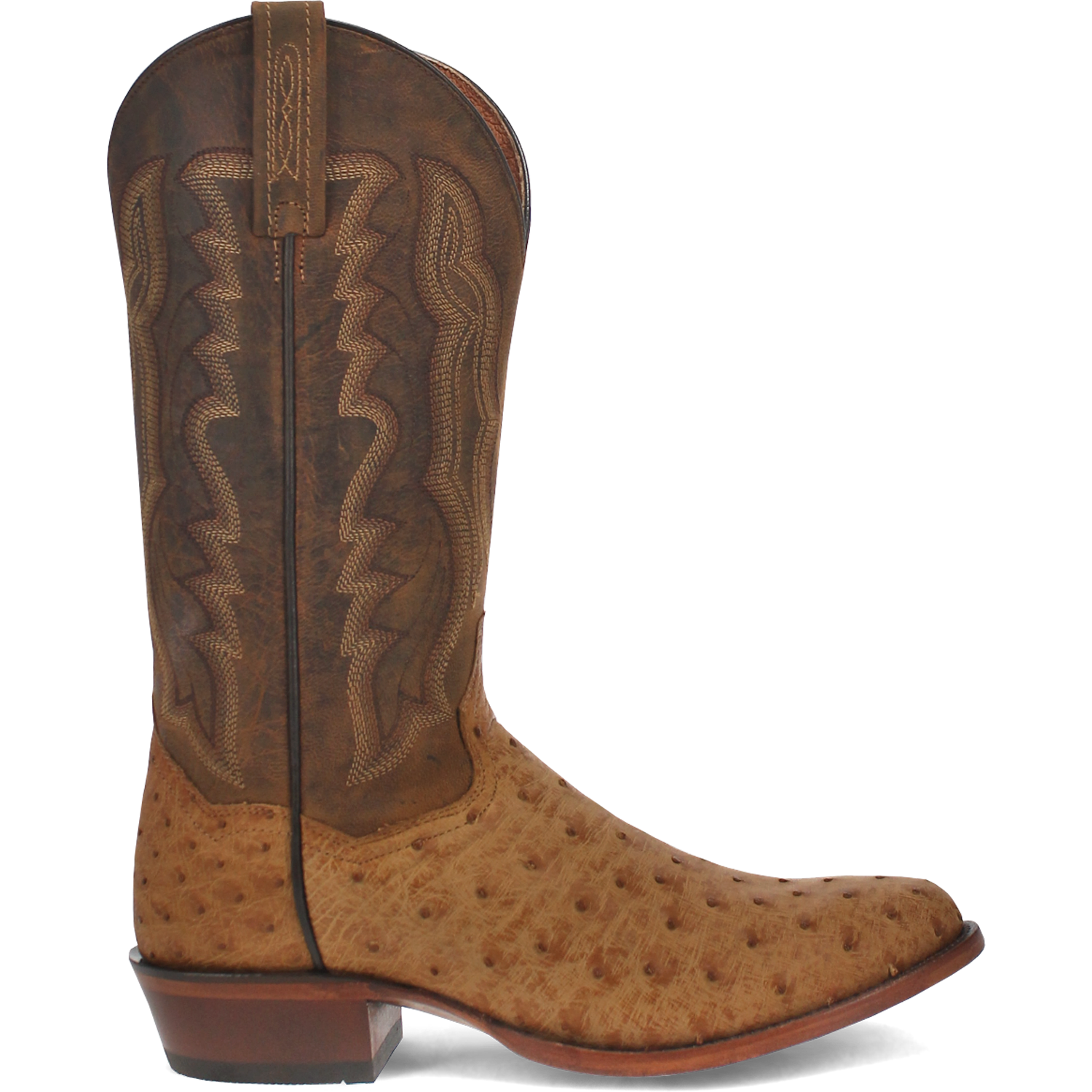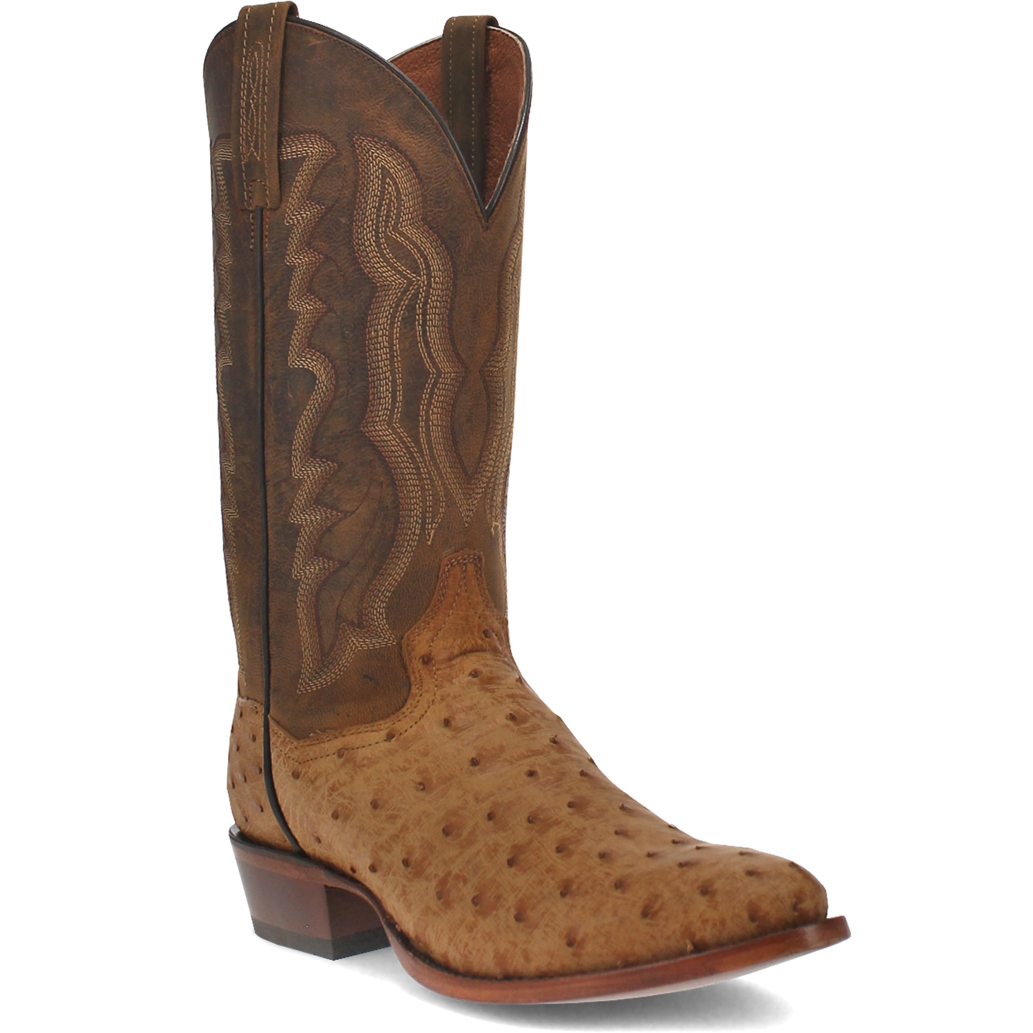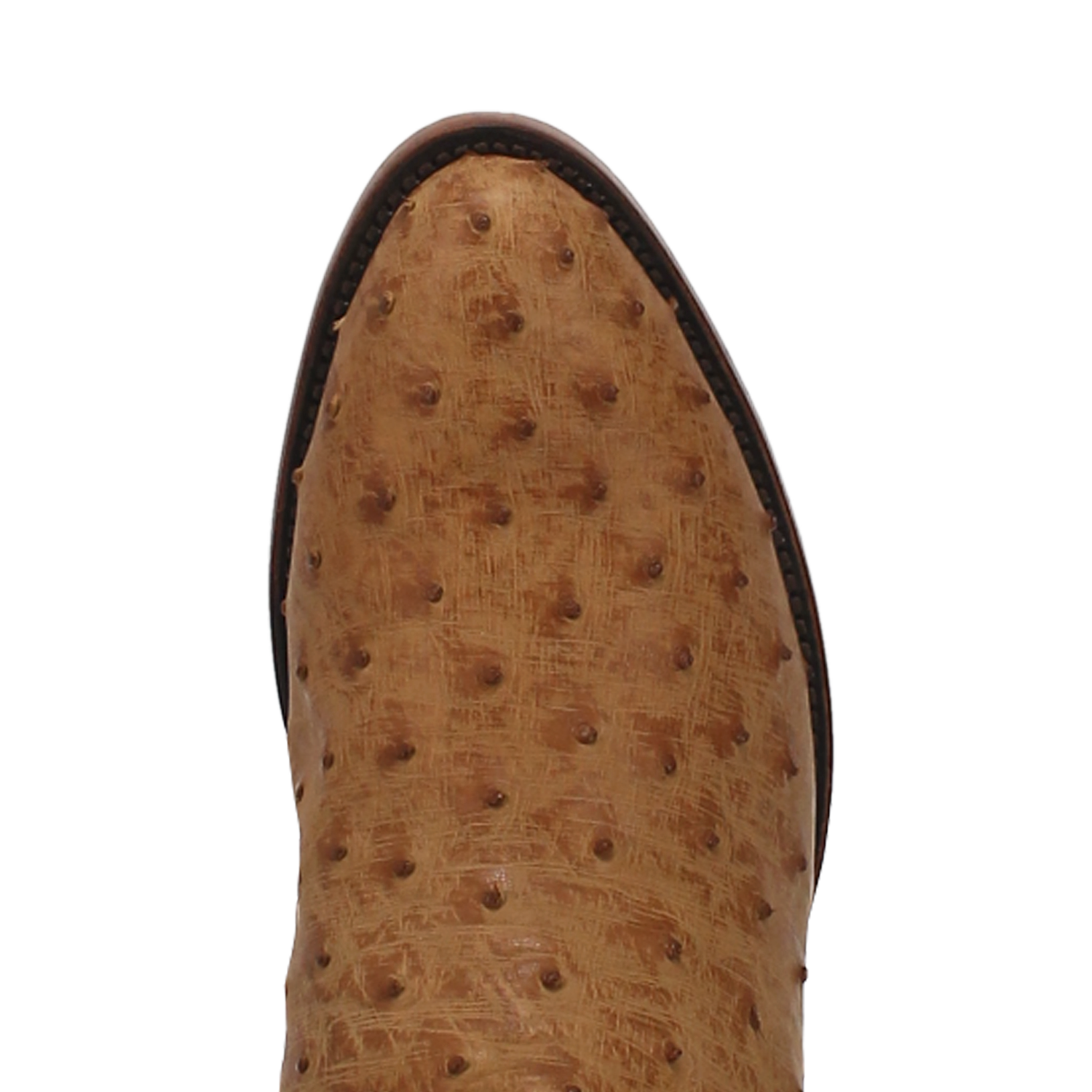 Full quill ostrich is one of the most desirable exotic skins. The Gehrig has a soft saddle ostrich foot with contrasting brown stitched upper. Features the popular round toe, cowboy heel, leather lining and leather outsole. The Removable Soft Strike Orthotic delivers comfort from step one. You will love the feel of the soft ostrich.