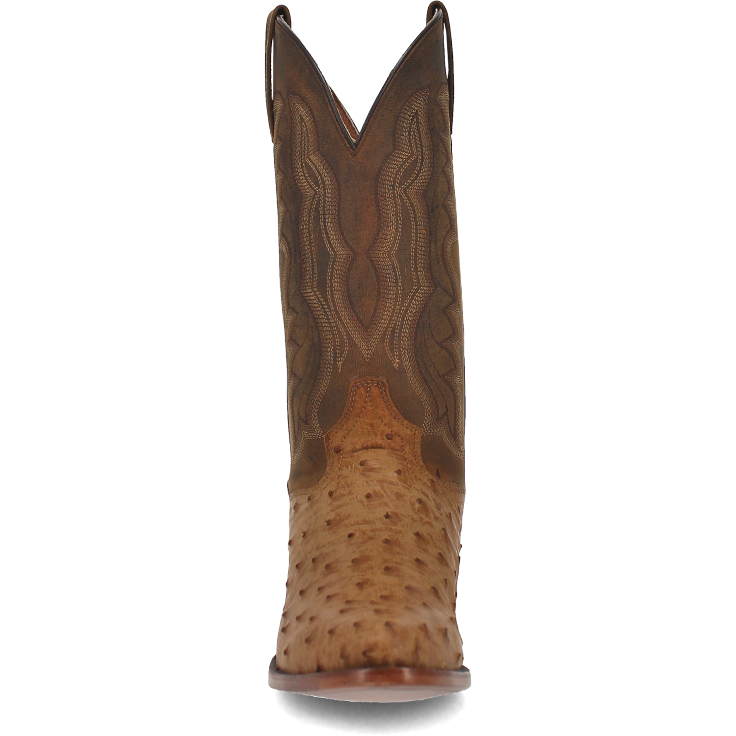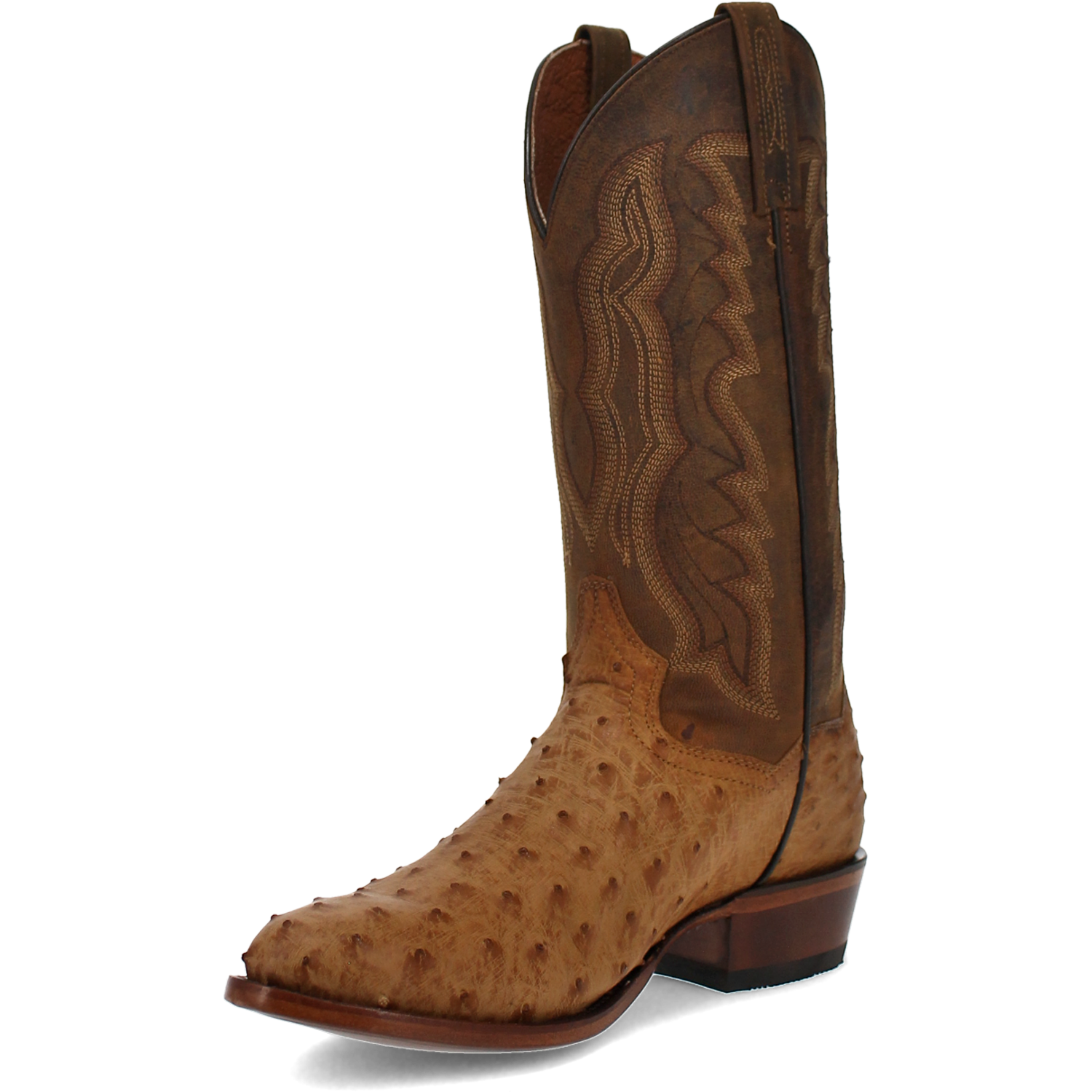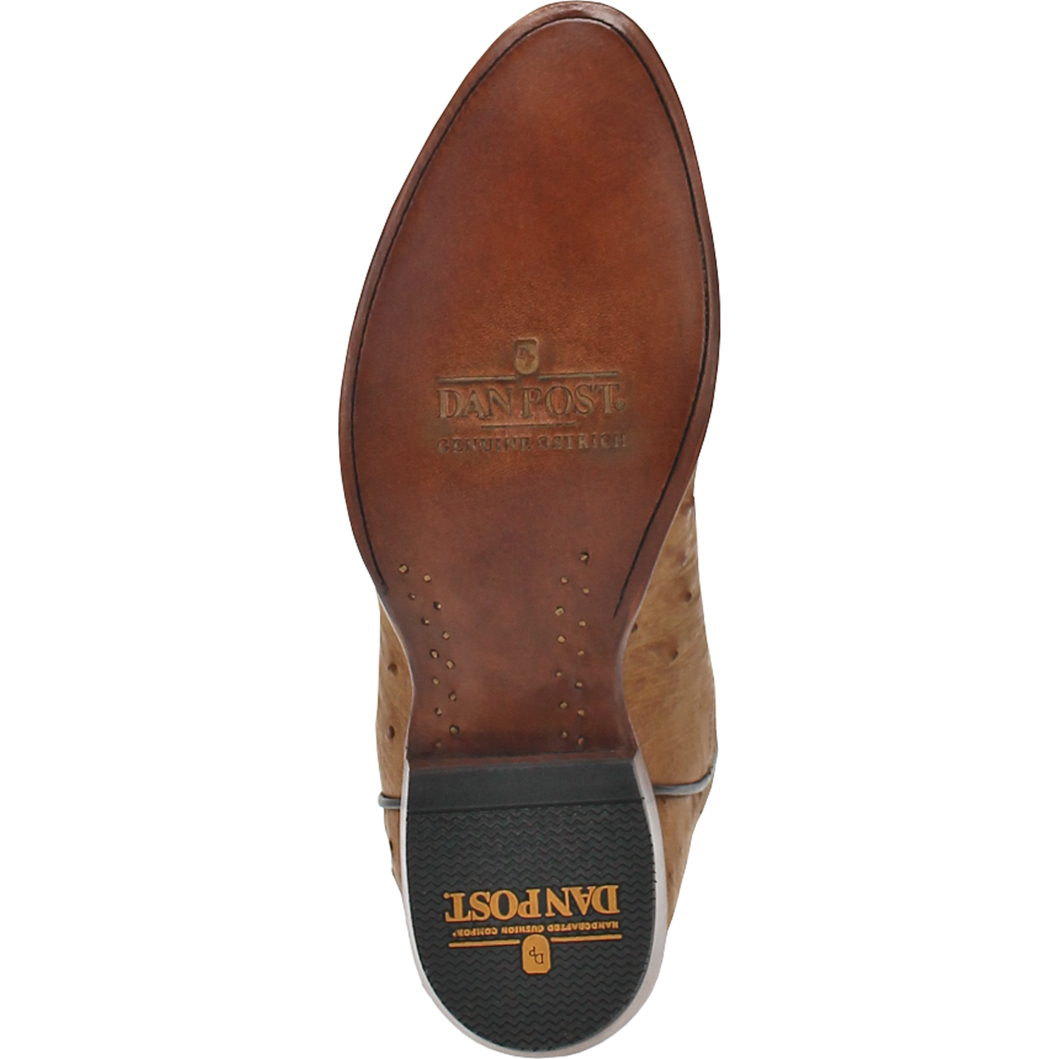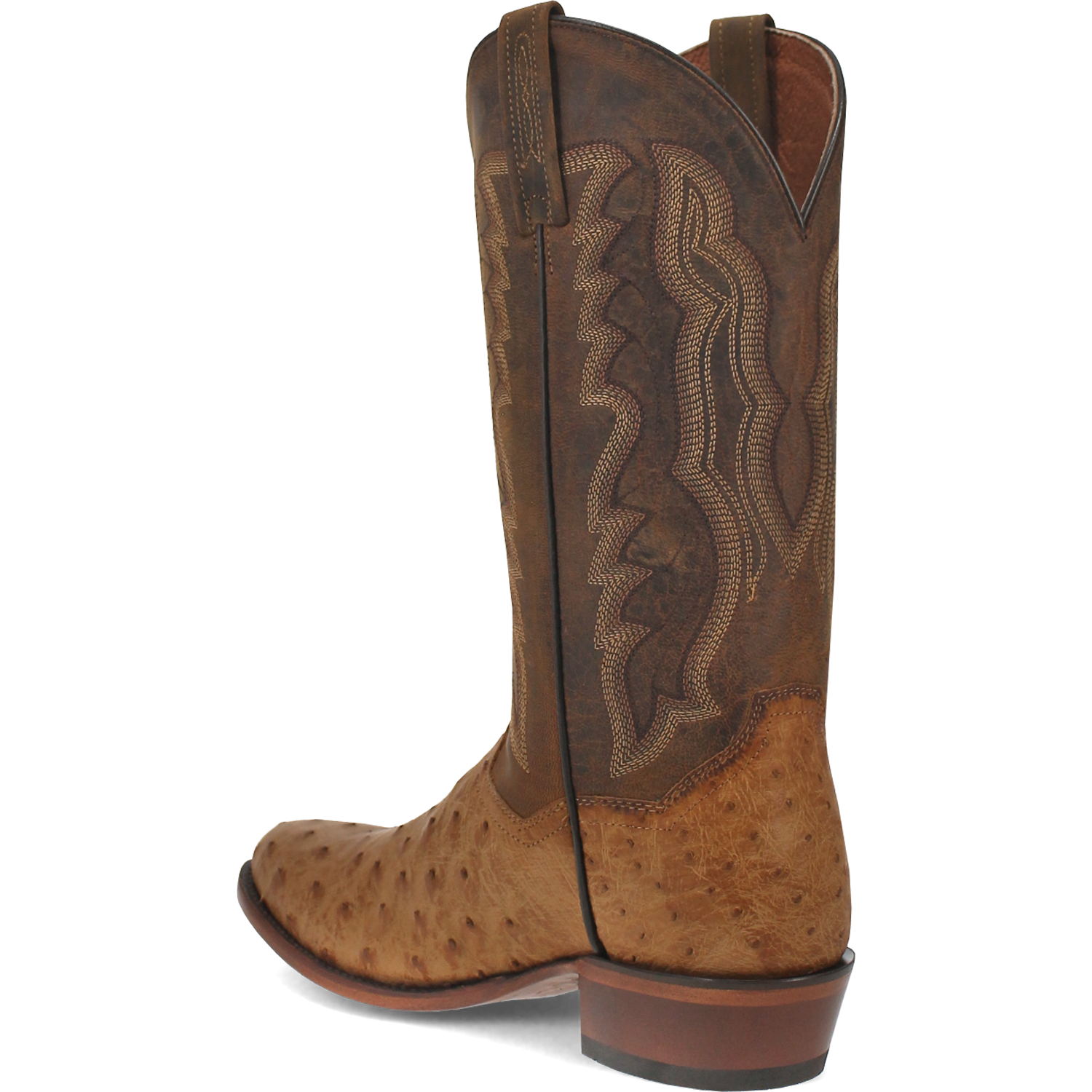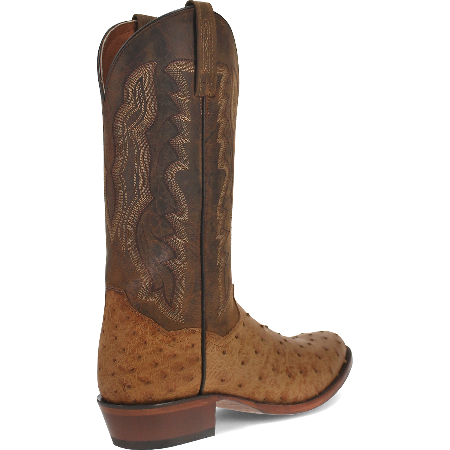 Full quill ostrich is one of the most desirable exotic skins. The Gehrig has a soft saddle ostrich foot with contrasting brown stitched upper. Features the popular round toe, cowboy heel, leather lining and leather outsole. The Removable Soft Strike Orthotic delivers comfort from step one. You will love the feel of the soft ostrich.