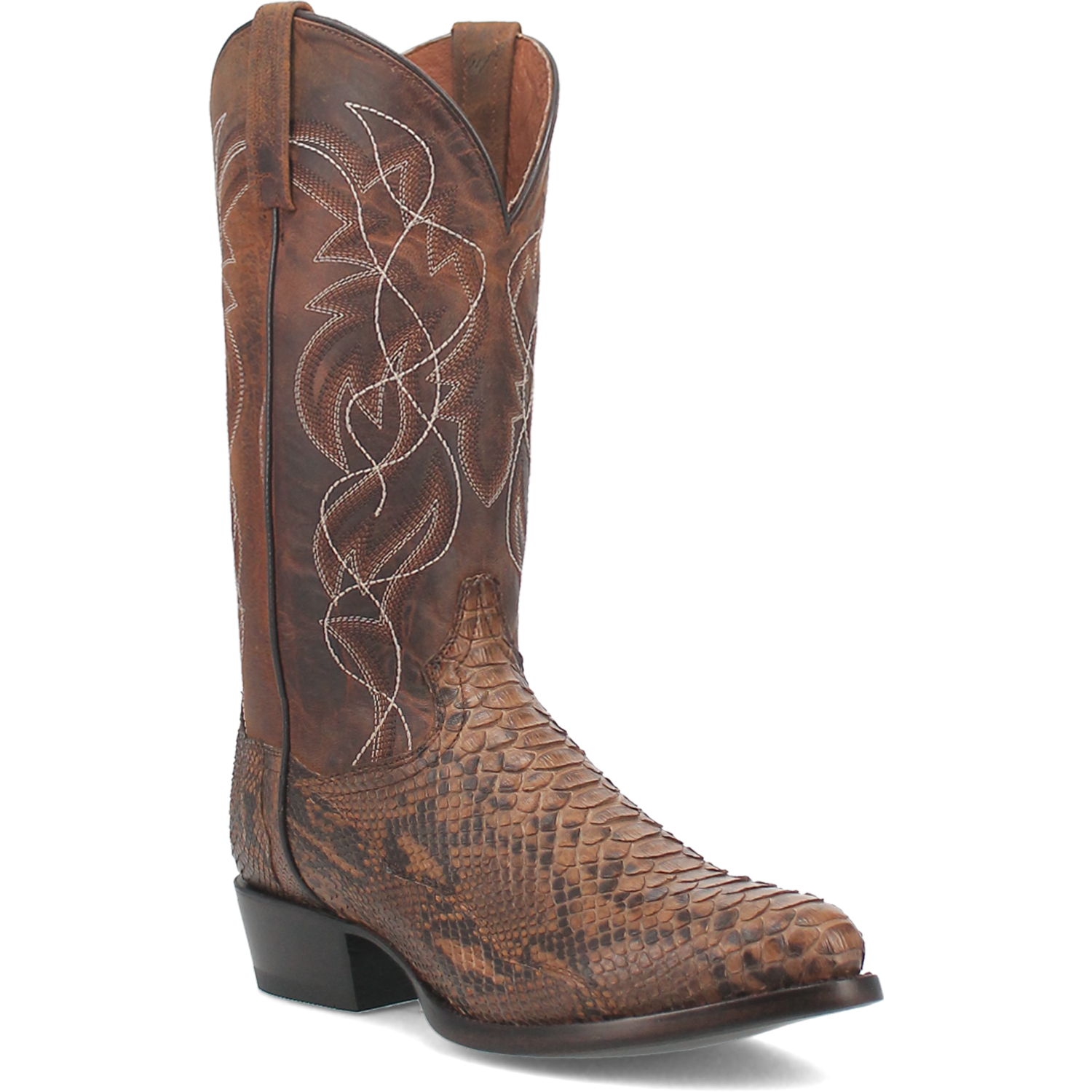 Crafted to perfection, the Manning is made with a genuine python skin foot and leather shaft. The white classic stitching adds a great look to this exotic boot. Comes with a Soft Strike Removable Orthotic.