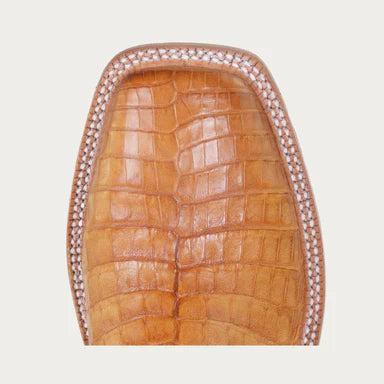 • Classic tan belly caiman leather vamp