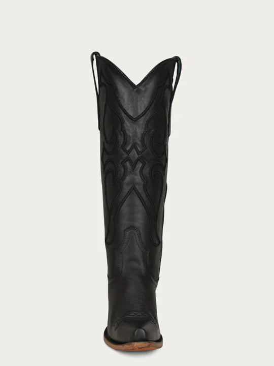 Elegant, sleek, and beautiful. This is the ideal black boot with its simple embroidery patterned design that highlights its tall silhouette.